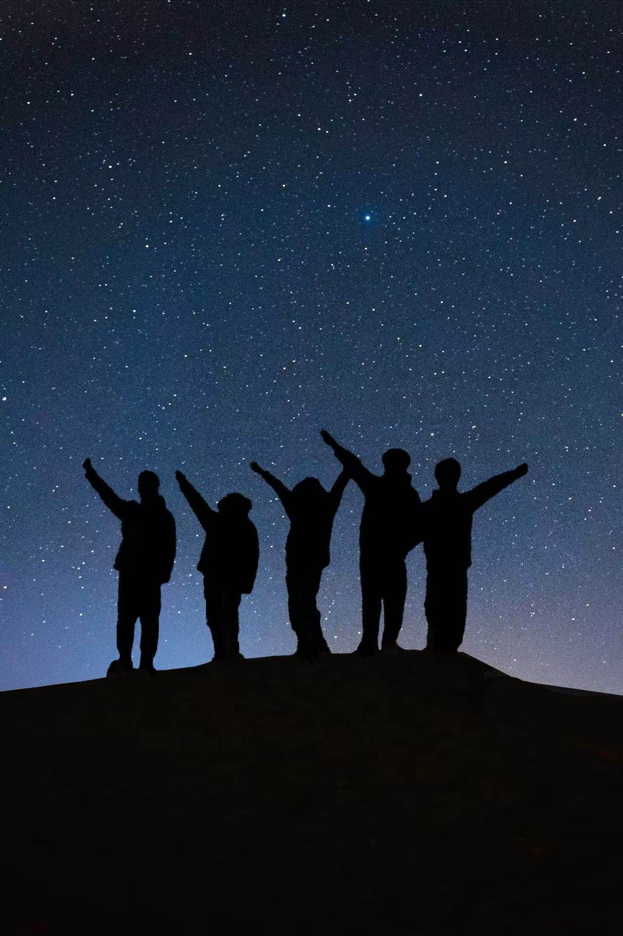 后半夜我和唐老师一直在忙着拍照,我们五个人在那里摆pose都摆了好久好久。星空和人很难完美地融合在一起,但最后终于终于,得到了一张非常满意的照片。